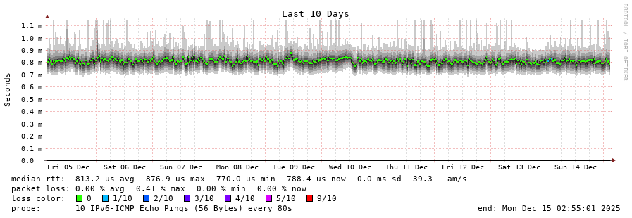 12 > one.one.one.one (2606:4700:4700::1111) [AS13335] 0.805ms 0.716ms 0.822ms