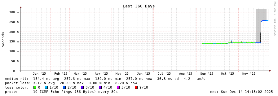 14 > 163.139.37.253 (163.139.37.253) [AS2519] 257.032ms 265.866ms 257.413ms