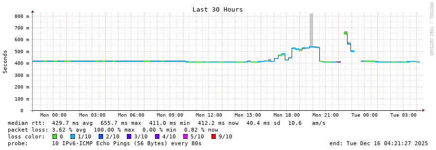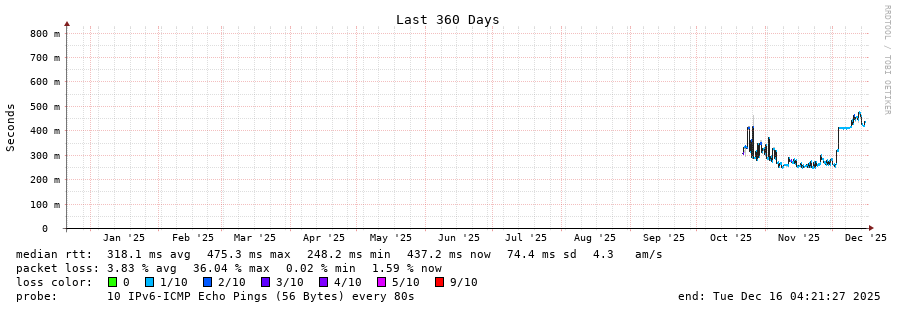 traceroute to 2001:4350:1:1::ff90 (2001:4350:1:1::ff90), 30 hops max, 80 byte packets - Generated at 2025-12-15 21:45:01