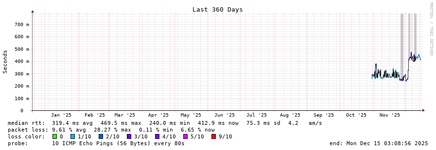 29 > 194.243.137.37 (194.243.137.37) [AS19905] 407.475ms 407.302ms 407.386ms