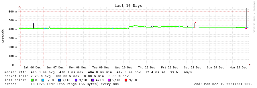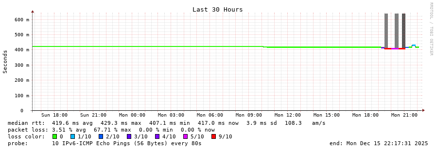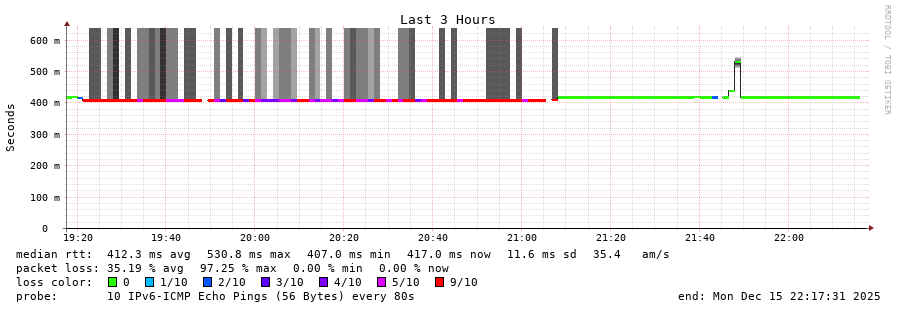 traceroute to 2a03:8f84::f1b6:9702:29c:9062 (2a03:8f84::f1b6:9702:29c:9062), 30 hops max, 80 byte packets - Generated at 2025-12-14 22:15:01
