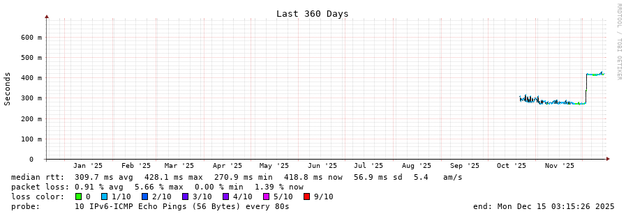 18 > 2001:67c:10:1102::11 (2001:67c:10:1102::11) [AS60149] 415.902ms 415.816ms 415.967ms