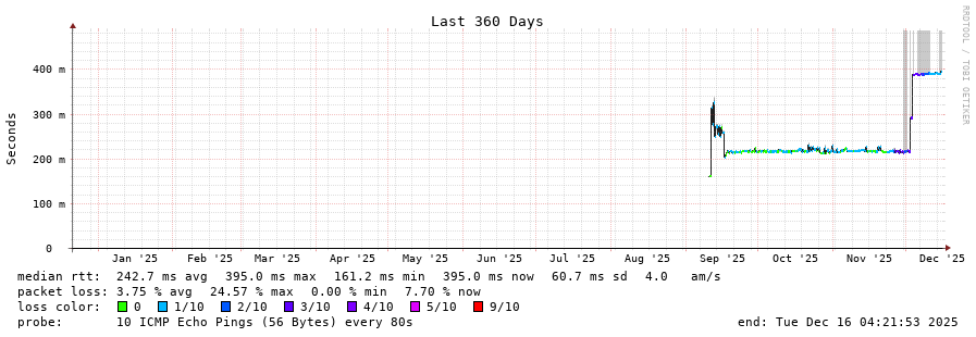 19 > 86.96.206.57 (86.96.206.57) [AS5384] 394.022ms 394.079ms 393.927ms