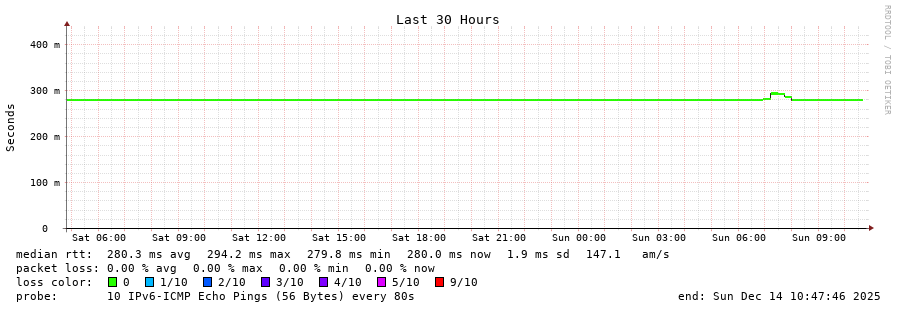 15 > fdff:f000:30::1 (fdff:f000:30::1) [*] 280.568ms 280.556ms 280.611ms