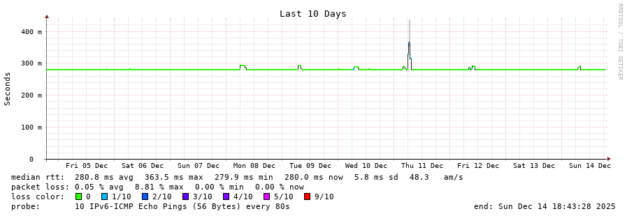 16 > fdff:f003:fff8::9 (fdff:f003:fff8::9) [*] 287.835ms 286.490ms 285.501ms