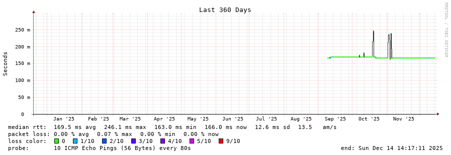 12 > be101.sjo-sv5-sbb1-8k.ca.us (198.27.73.105) [AS16276] 159.042ms 151.231ms 150.612ms