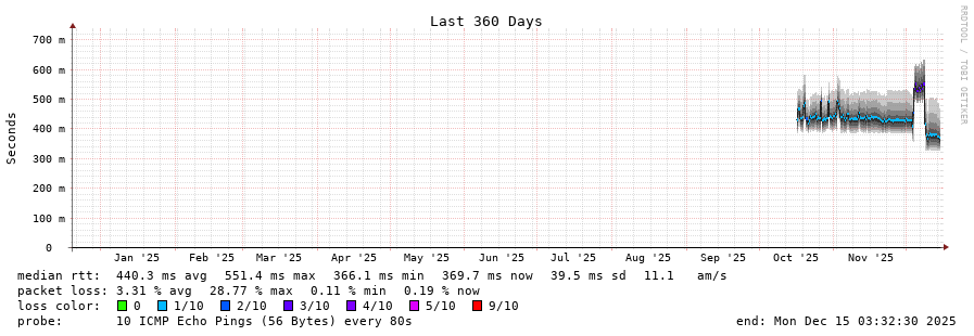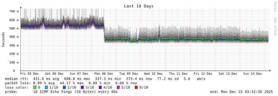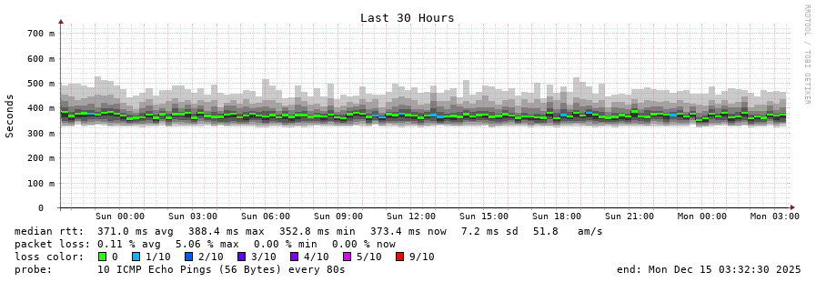 15 > 195.22.220.127 (195.22.220.127) [AS6762] 299.460ms 299.403ms 299.437ms