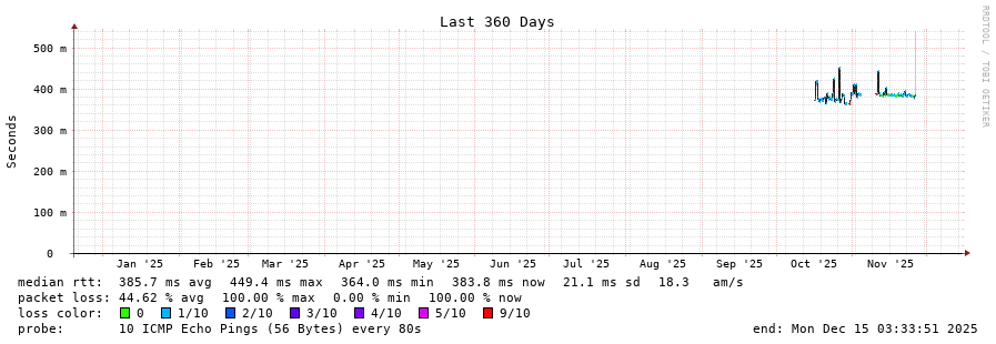 15 > 213.144.185.45 (213.144.185.45) [AS6762] 246.432ms 246.233ms 246.314ms
