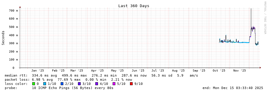22 > 199.100.8.23 (199.100.8.23) [AS174] 293.880ms 292.580ms 287.889ms