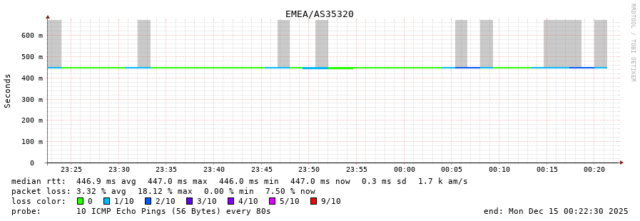 49. Median RTT 0.447 seconds