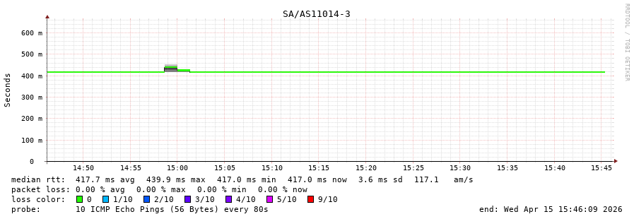 11. Median RTT 0.453 seconds