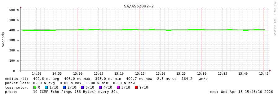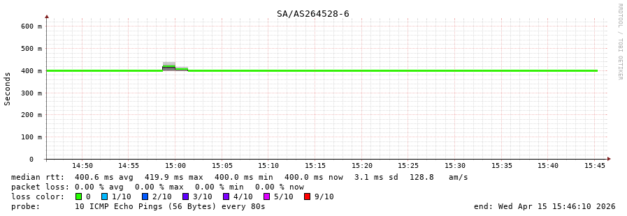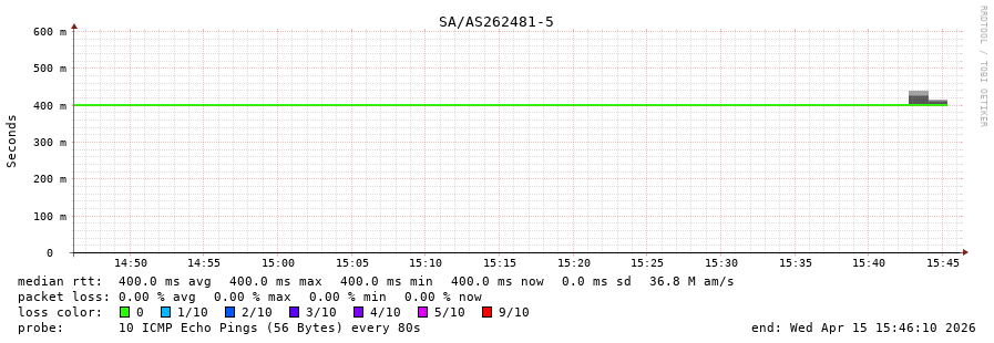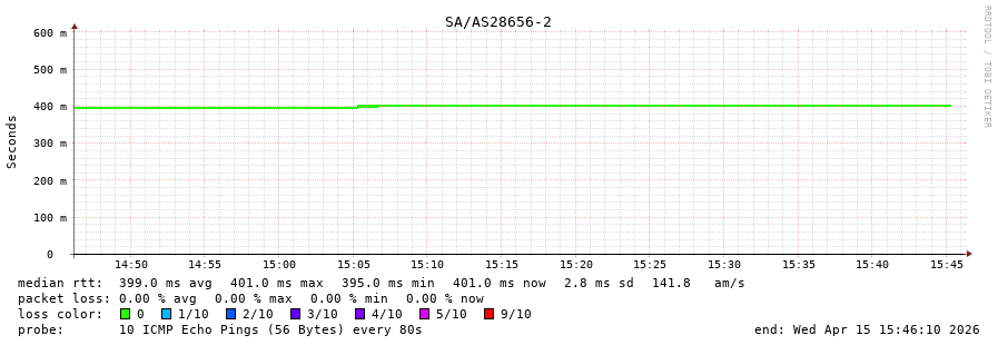 46. Median RTT 0.400 seconds