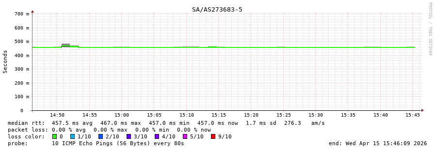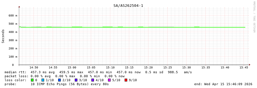 9. Median RTT 0.457 seconds