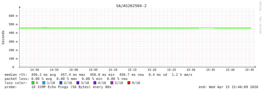 8. Median RTT 0.457 seconds