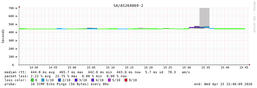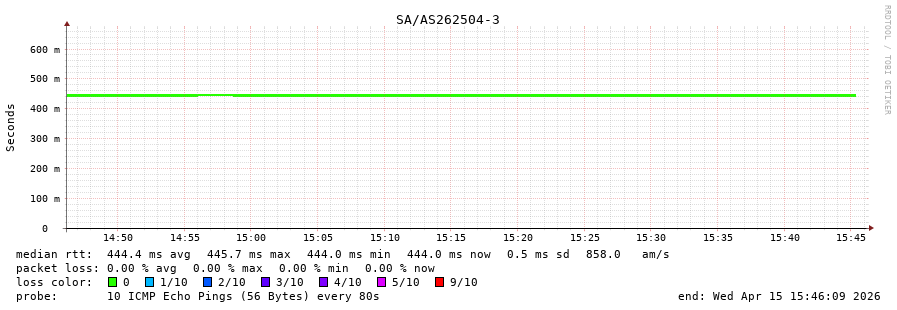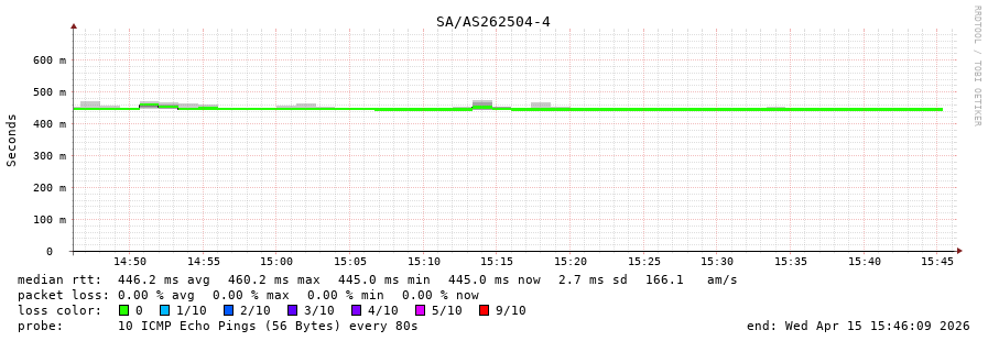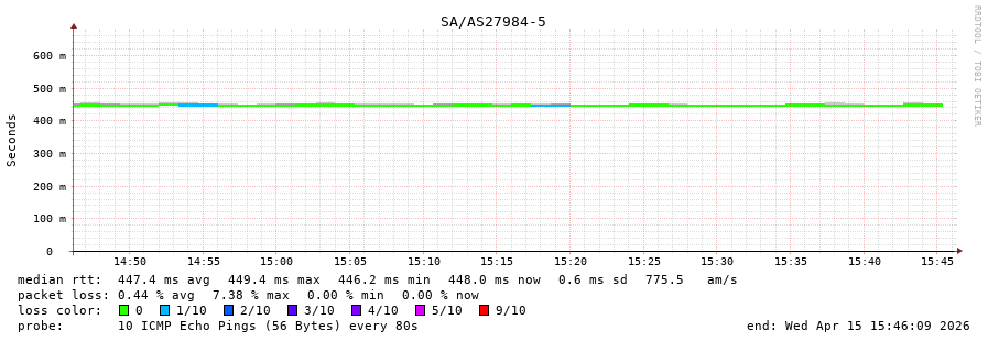15. Median RTT 0.448 seconds