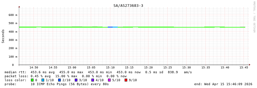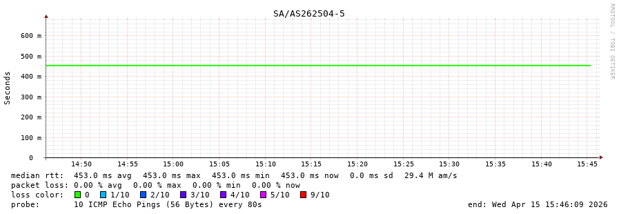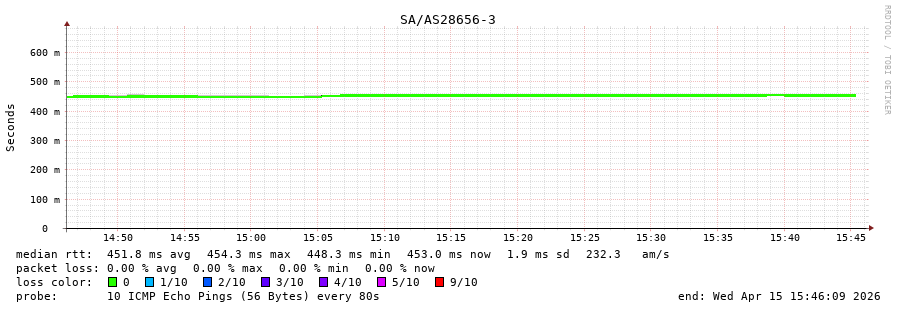 13. Median RTT 0.453 seconds