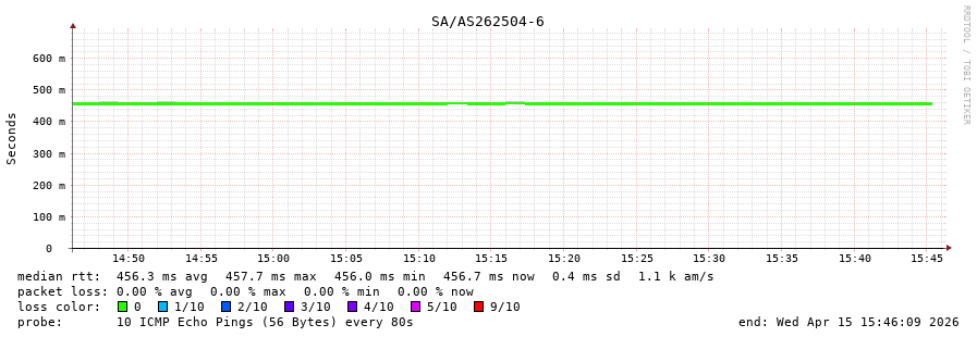 6. Median RTT 0.457 seconds