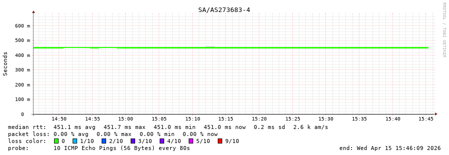 14. Median RTT 0.451 seconds