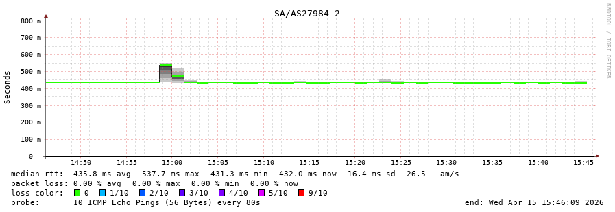 27. Median RTT 0.435 seconds
