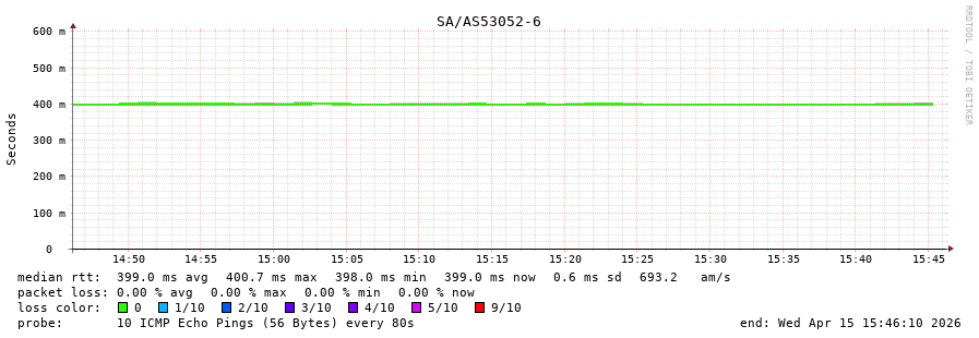 49. Median RTT 0.399 seconds